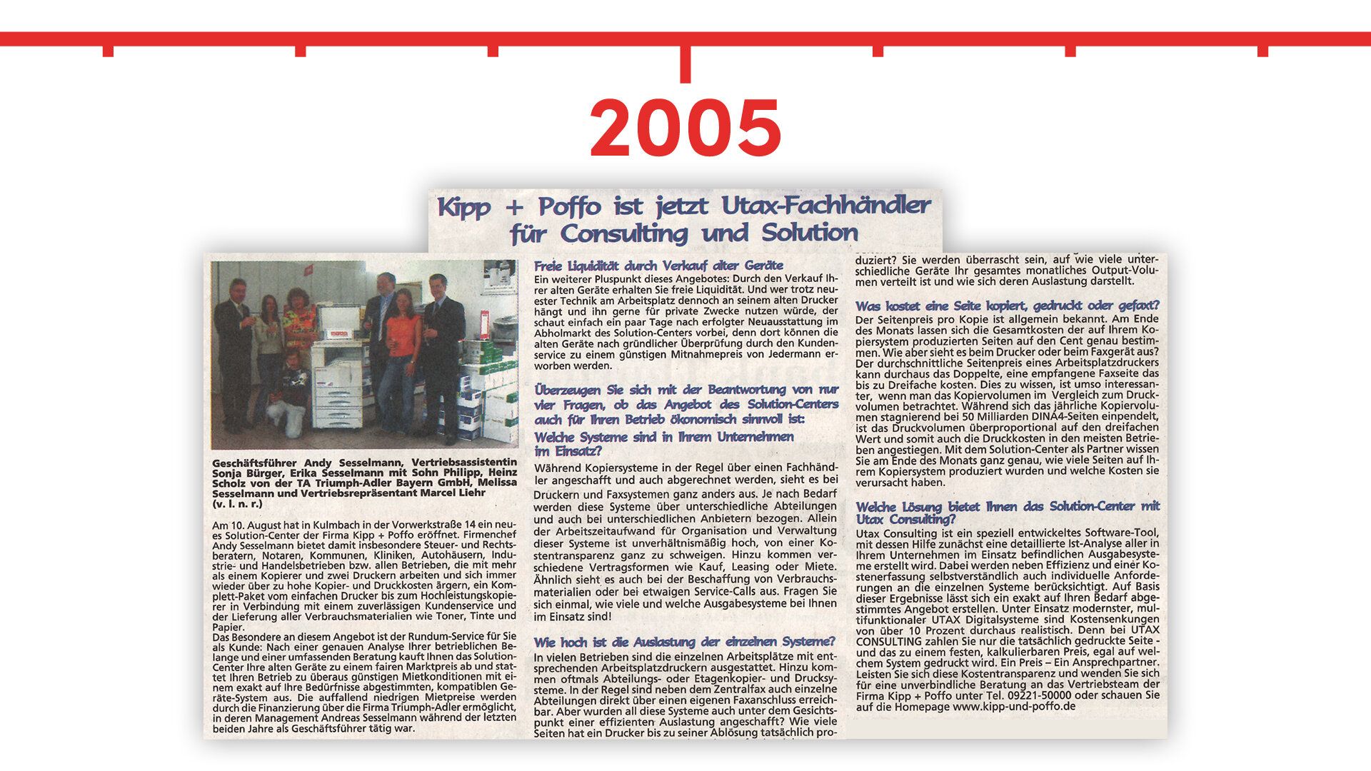 Ab 2005 wird die Partnerschaft mit UTAX durch die Spezialisierung auf ganzheitliches Consulting ausgebaut und das Produktportfolio um Scanner- und Softwarelösungen erweitert. Somit können neue Kundengruppen v.a. im Health Care und Automotive Bereich, sowie in der mittelständischen Industrie gewonnen werden.
